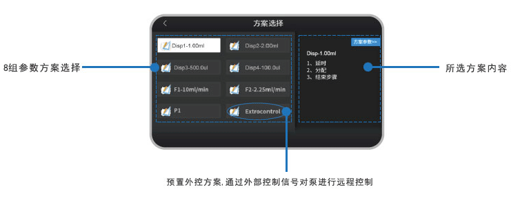 · 預(yù)置外控方案,用于通過外部信號對泵進(jìn)行操作和控制