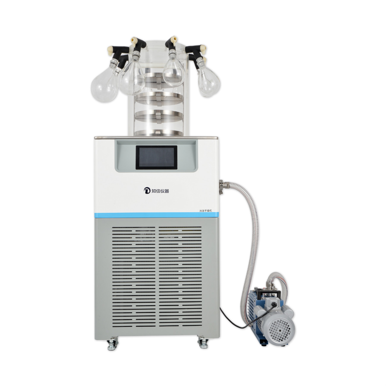 同時(shí)最多掛瓶為8個(gè),分為以下4種規(guī)格:500ml、250ml、100ml、50ml,可根據(jù)需要自由組合,凍干過程中可隨時(shí)更換凍干瓶,