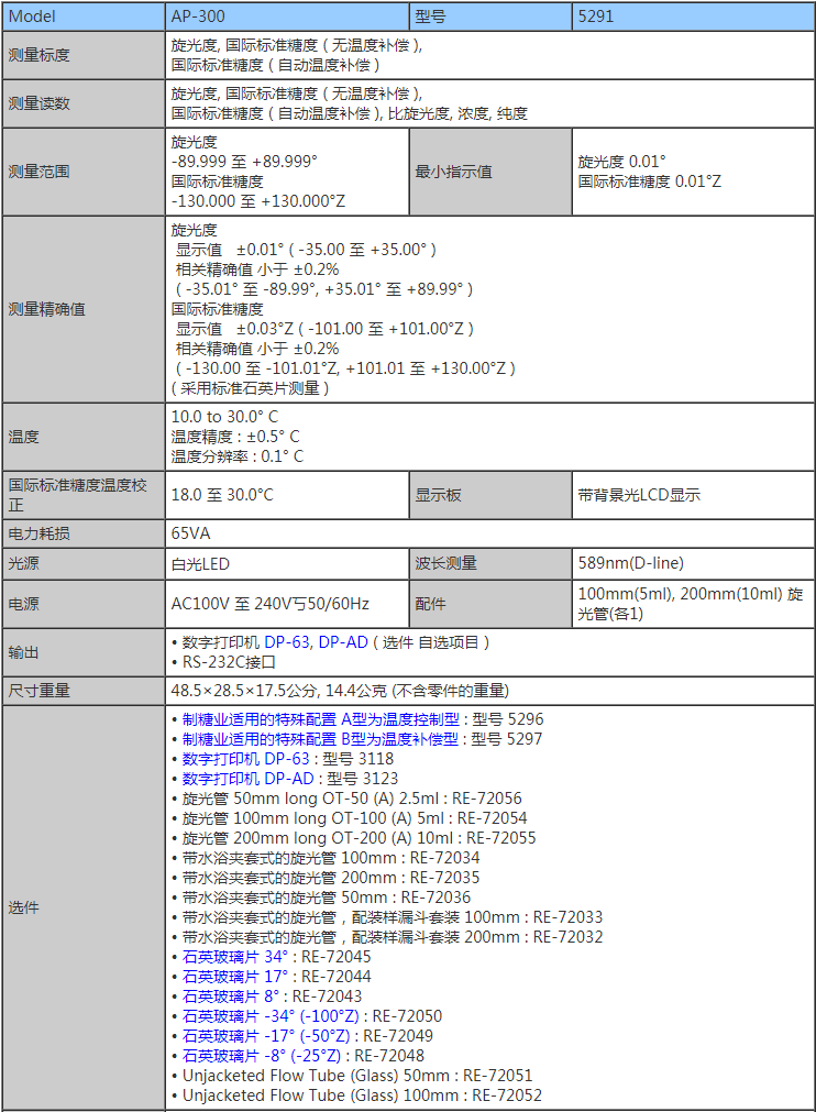 | 測(cè)量讀數(shù) | 旋光度,國(guó)際標(biāo)準(zhǔn)糖度(無溫度補(bǔ)償),國(guó)際標(biāo)準(zhǔn)糖度(自動(dòng)溫度補(bǔ)償),比旋光度,濃度,純度 |