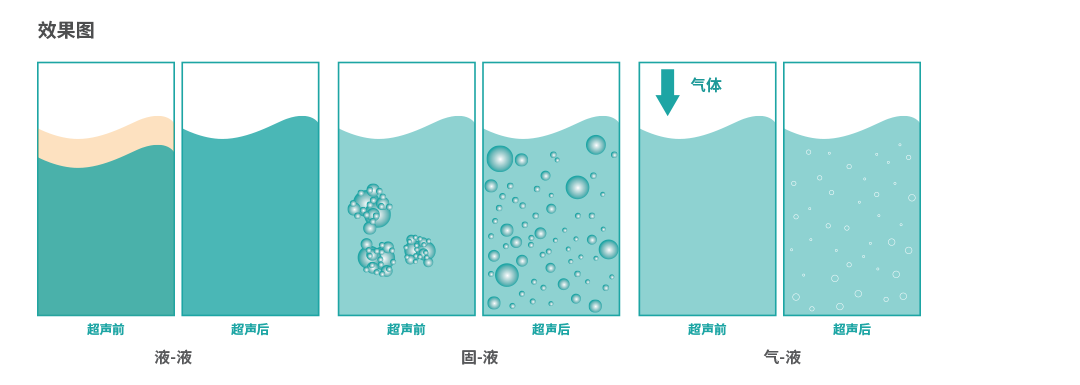 超聲波發(fā)生器和超聲波換能器組件兩大部分組成。超聲波發(fā)生器(電源)是將220VAC、50Hz的單相電通過變頻器件變?yōu)?0-25kHz、約600V的交變電能、并以適當的阻抗與功率匹配來推動換能器,作縱向機械振動,振動波通過浸入在樣品溶液中的鈦合金變幅桿對被分散的各種樣品產生空化效應,從而達到超聲分散的目的。