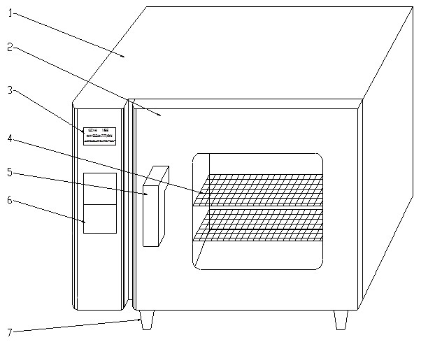 2、箱門中間設有鋼化玻璃觀察窗,便于觀察箱內物品,箱門與箱體之間用耐高溫硅橡膠密封條密封,保溫性好。