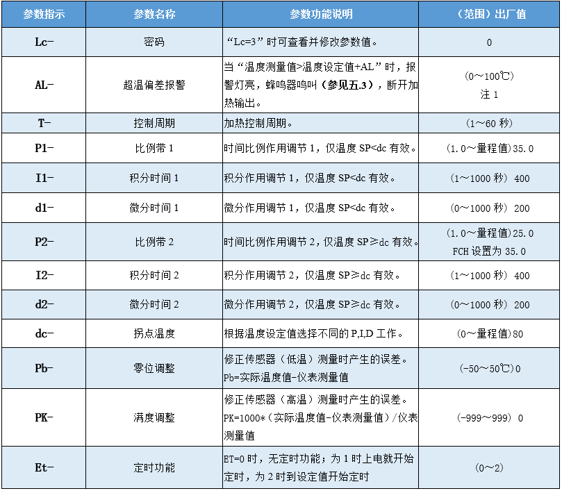 注意:為使控制達到最佳效果,可適當修改P(修改范圍一般在“30 ~40”之間),但通常情況下無須修改,直接使用出廠參數即可。